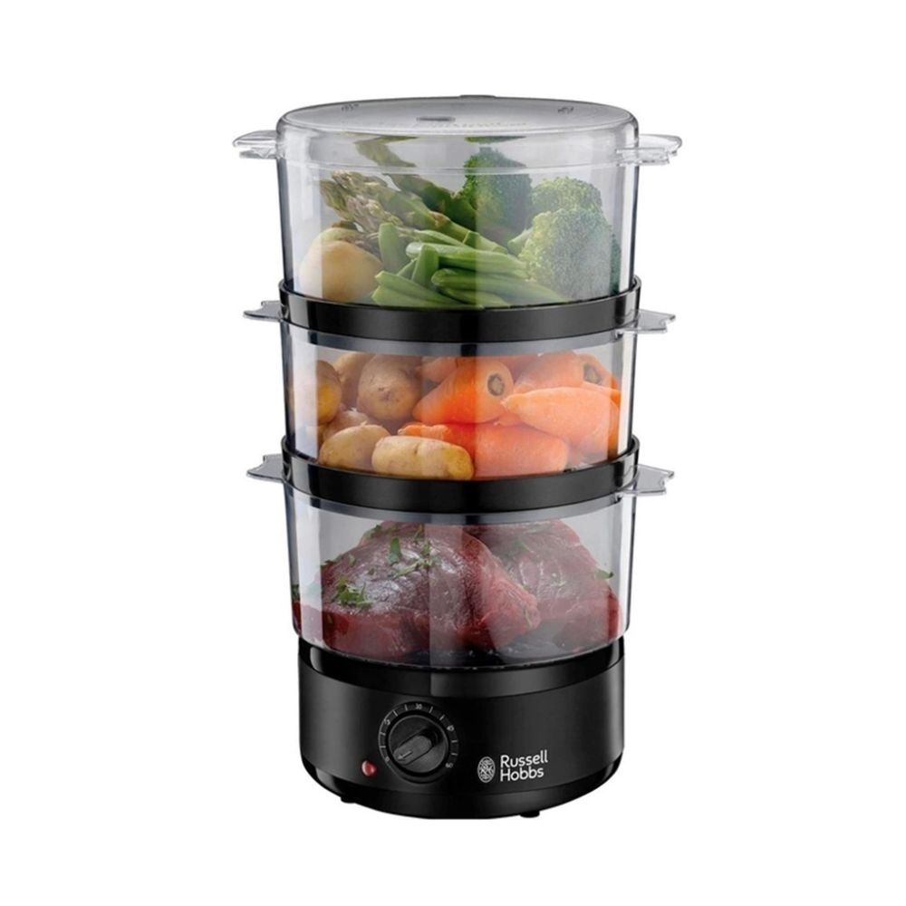 Компактная пароварка Kitchen Collection 26530-56 от Russell Hobbs — это здоровый способ приготовления пищи. Ведь приготовленные на пару продукты сохраняют максимальное количество питательных веществ и витаминов. Эта трехуровневая пароварка разработана, чтобы удовлетворить все ваши потребности. Три отдельные ёмкости позволяют готовить разные продукты сразу, включая рис, овощи и рыбу. А резервуар объемом 500 мл (максимальное заполнение) хватает на 60 минут работы без дополнительного добавления воды.